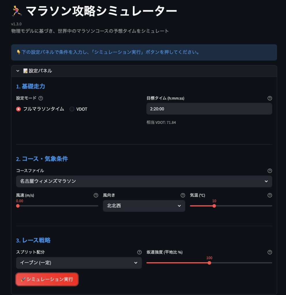 マラソン攻略シミュレーターで